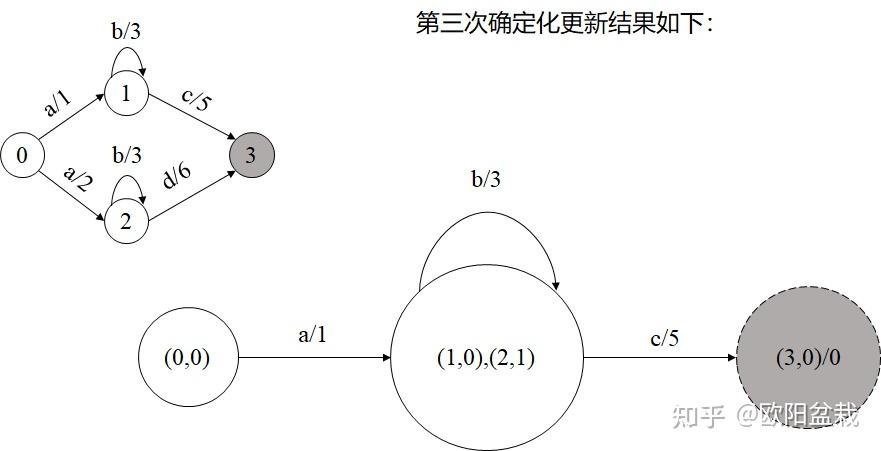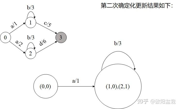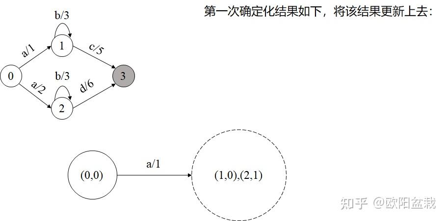 ⨁操作决定!这是确定化算法的精髓和主要挑战。◦ 正确表述: “但是状态 0 到状态 <1,2> 的 weight 是由