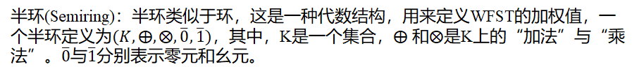 半环(Semiring)框架在加权自动机(WFSA/WFST)中的应用